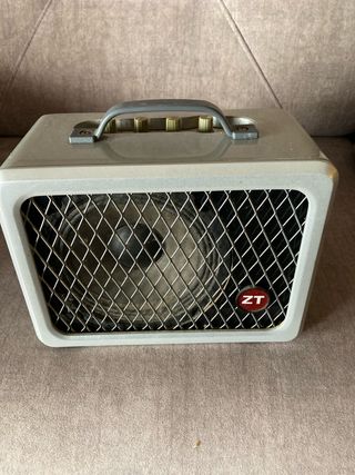 Amplificador ZT LunchBox 02 para guitarra eléctrica. Compacto y potente, ideal para practicar o pequeños conciertos. - Diseño robusto y portátil. - Acabado en color gris. - Asa superior para fácil transporte. - Rejilla protectora metálica. 200 W 120 Db. de los amplificadores mas potentes en su tamaño , pesa solo 4,3 Kgs . Con un sonido increible . no tengo la funda .