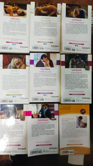 Vendo pack de 20 novelas románticas de varios autores de Harlequin, están en perfecto estado. El pack incluye: - Amor en cadena II - Corazones de plata - Las canciones de nuestra vida: vuelves en cada cancion - El hechizo de un beso - Contigo lo quiero todo - Deletreame te quiero - Vuelve a quererme - Di que si - El escándalo perfecto - Los hombres de verdad: No mienten - Amor en V.O. - Lo mejor de mi amor - El secreto más oscuro - Solo los locos se enamoran - Las hijas de la novia - La caricia del viento - La última línea del espejo - Despierta a mí lado - Bloody Mary - Inmune a sus encantos