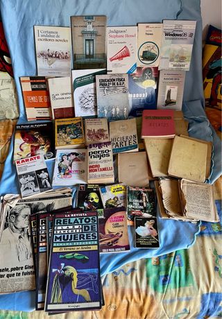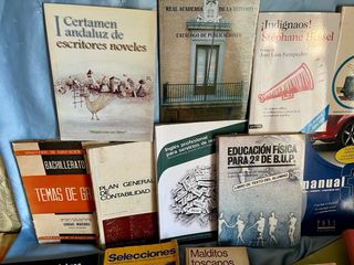 Selección de novelad y relatos. -Portal de Palabras - Indignaos! de Stephane Hessel - I Certamen Andaluz de escritores noveles - Varias Novelas - Libros de Relatos - 8 Relatos de Mujeres - Un Cierto Misterio, Hechos de la vida real narrados por Eugenia Montero. provienen de una revista, hay un montón. Desconozco revista y año, pero son antiguas. - Manual Windows 98, Plan Contabilidad General Banco Vizcaya 1973, Inglés profesional para servicios de restauración, AutoCad 2010, Autoescuela, Karate, El lago de los cisnes enciclopedia Pulga, Trenes de Bruguera... Lo que se ve en las fotos