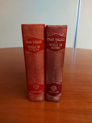 Edgar Wallace, Novelas de intriga (tomo I) y Novelas de Misterio (tomo II). Editorial Aguilar. Tomo I, segunda edición, 1949. 1.188 páginas. Tomo II, tercera edición, 1952. 1.262 páginas. Bordes decorados. Sello de anterior propietario en primera página. En muy buen estado.