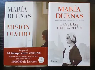 2 libros de Maria Dueñas,la best-seller española.Misión olvido tiene una pequen̈a raja en la cubierta.lo demás perfecto