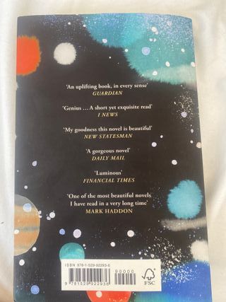 Orbital es una novela que describe el punto de vista de varios astronautas que salen en una misión interespacial. Ellos recuerdan su vida en la tierra con gran nostalgia pero también con un sentido de deber ante sus países de explorar mundos fuera.