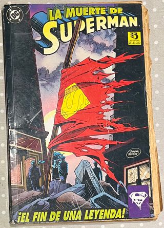 "📘 EN VENTA: La Muerte de Superman – Ediciones Zinco Mítico ejemplar "¡El fin de una leyenda!" que narra el épico enfrentamiento contra Doomsday. Una pieza histórica de DC Comics publicada en España por Ediciones Zinco. ✨ Estado del ejemplar: - Desgaste visible: La portada y el lomo muestran señales claras de uso y paso del tiempo. - Interior: Páginas completas a todo color con el arte clásico de Jurgens y Breeding. - Ideal para lectura o completar colección a precio accesible. 📖 Sobre la obra: Recopila el evento que marcó un antes y un después en la historia del cómic. Idioma: Castellano. 📦 Envío: Se enviará bien protegido.