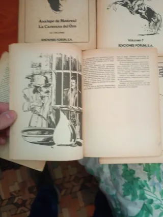 El lote incluye los números 37, 38, 42, 50, 77, 112, 113, 115, 116, 118, 119, 121, 122, 129, 136, 140, 141, 163 y 171 de la colección publicada por Forum entre 1982 y 1996. Grapa, 64-100 páginas en blanco y negro con cubiertas en color por número.