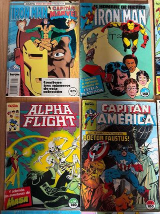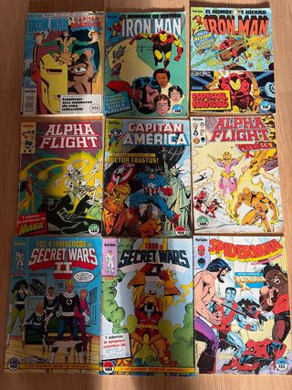Lote de comics forum. - Retapado iron man números 41,42,43 - Iron Man 33, 9 - Alpha Flight 22 y 34 - Capitán América 5 - Secret Wars 2: 32 y 36 - Soiderman 102