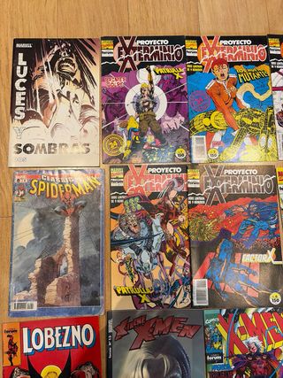 Lote formado por: - 4 fantásticos luces y sombras 2 - Proyecto exterminio: 1,2,3,4,6 - La Patrulla X: 125 - Classic Spiderman: 4 - x force: 6 - los caballeros de pendragon 7 - Lobezno 17 - xtreme xmen 13 - xmen: 2 y 3 - Human Torch 1