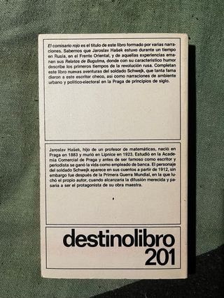 El comisario rojo. Jaroslav Hašek Esta edición incluye 'Nuevas aventuras del valeroso soldado Schwejk y otros relatos', con ilustraciones en blanco y negro de Joseph Lada. Editorial: DESTINO: DESTINOLIBRO Idioma: es-ES Páginas: 304 Formato: tapa blanda