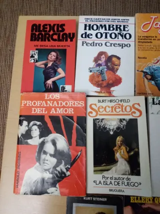 Bang Crimen psicodélico, Mi dulce moribunda, Anhelos Secretos, La maravilla de los diez días, La coquetería de Berta Cool. Erle Santely Garner aliasb A.A. Fair, El hostiganten verano de los dioses, El infierno de slocum's, Sexy Bar , Cecilio Benítez de Castro, Melodía asesina. Curtisn Garland