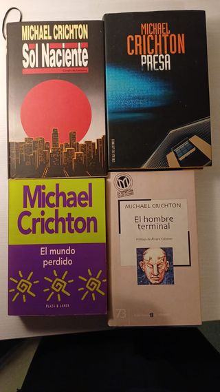 Colección de diversas novelas del escritor de misterio, ciencia ficción y terror estadounidense Michael Crichton. Precios: - Presa - 6 € - Sol Naciente - 6 € - El Hombre Terminal - 5 € - El Mundo Perdido - 5 € - Venta en conjunto - 16 €