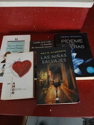 5 libros usados en buenas condiciones Desgaste por uso Todos los detectives se llaman flalagan Epílogo del Amor Las niñas salvajes La familia de Pascual Duarte Pídeme lo que quieras