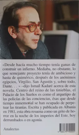 "Desde hacía mucho tiempo tenía ganas de construir un infierno. Mediaba, no obstante, lo que semejante proyecto tenía de ambicioso y hasta de quimérico, después de los anónimos egipcios, Virgilio, San Agustín y, sobre todo, Dante..." -dijo Ismail Kadaré acerca de esta novela. Centro del reino de las tinieblas, el Palacio de los Sueños es como el arquetipo de las policías de las conciencias, ésas que desde tiempo inmemorial se han ocupado de perpe-tuar las tiranías. Escrita y publicada en Albania en 1981, esta obra resuena como un grito de ho-rror en la noche de los imperios del Este, hoy derrumbados o en agonía.