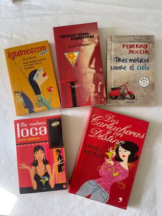 📚 Lote 5 libros de novela romántica con humor (usados en buen estado) Divertidas historias de amor, enredos y risas, ideales para disfrutar o regalar estas fiestas. Perfectas para quienes buscan lecturas ligeras, entretenidas y con mucho encanto. 🎁 Incluye: • Bridget Jones: Sobreviviré – Helen Fielding (tapa blanda) • Tres metros sobre el cielo – Federico Moccia (bolsillo) • Liguemos.com – Alicia Misrahi (bolsillo) • Me vuelves loca – Carola Mathews (bolsillo) • Dos cartucheras y un destino – Idoia Bilbao (tapa blanda) 💰 Precio por el lote completo. 📍 Entrega en Elche o envío por Wallapop. ✨ Visita mi perfil y ahorra en gastos de