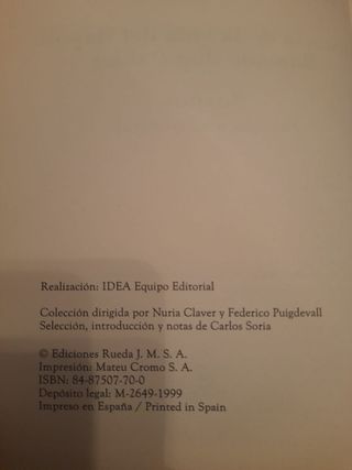 Libro en tapa dura editado por B.S.A en el 2000, sin roturas ni manchas,mide 22x16 centímetros y 400 gr. 253 pág. Hago envíos Ordinario:3'80 € Certificado:8'5€ o wallapop envíos