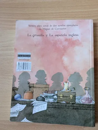 Libro las Novelas Ejemplares de Cervantes para niños. La esquina derecha está doblada