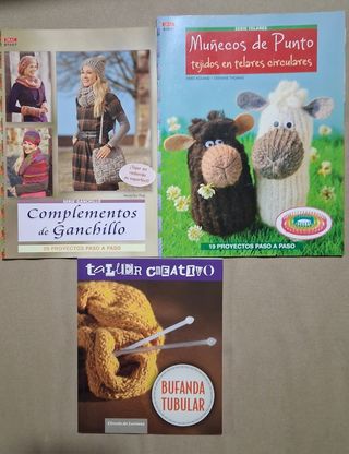 Tres cuadernillos pequeños: Accesorios de ganchillo; Proyecto bufanda tubular; Animales tejidos en telar tubular. Se venden juntos. Buenas ilustraciones y patrones. NO SEUR