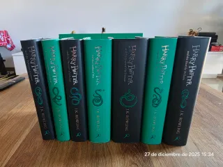 Esta es la edición especial "Hogwarts House Editions: Slytherin" publicada por Bloomsbury para celebrar el 20º aniversario de la saga. Se trata de un set muy valorado por coleccionistas, especialmente por ser la versión en tapa dura (hardback)