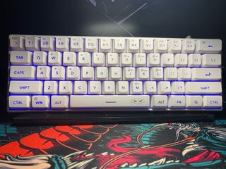 Teclado de membrana compacto de 61 teclas con retroiluminación RGB. Su diseño minimalista lo hace ideal para optimizar el espacio en tu escritorio. - Diseño de 61 teclas. - Retroiluminación RGB personalizable. - Construcción duradera. -ideal para juegos - poco usado -Contiene su caja original y sus accesorios