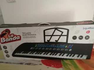 Teclado electrónico de la marca La Banda, ideal para iniciarse en la música. Diseñado para niños a partir de 6 años. - 54 teclas. - Incluye soporte para partituras. - Micrófono no incluido.