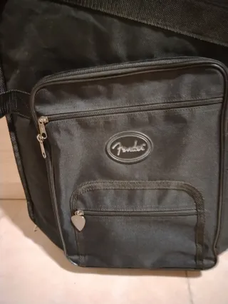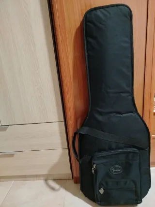 Funda para guitarra eléctrica de la marca Fender. Es de color negro y cuenta con un varios bolsillos frontales con cremallera para guardar cable púas... - Interior acolchado. - Material resistente. - Asa de transporte. - Colgador mochila.