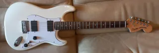 Guitarra eléctrica Squier Stratocaster modificada. Electrónica completa EMG pasiva, pastillas H3A. Bloqueo de correa Dunlop strap lock.