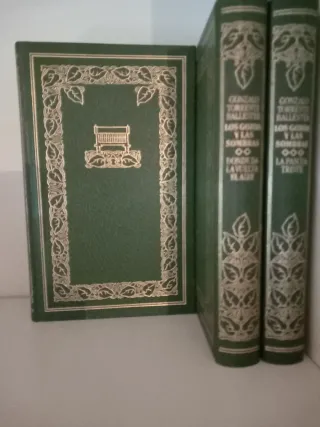 3 tomos encuadernados en verde y oro 13x21x2 cm cada libro