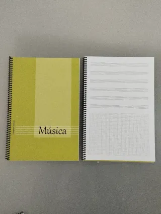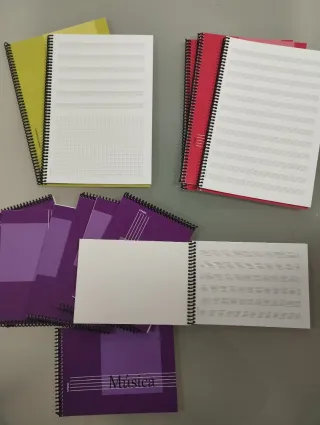 Conjunto de 13 libretas de pentagramas. Encuadernación en espiral. - 8 libretas 1/4 apaisado de 6 Pentagramas por pagina. - 3 blocs vertical, con 12 pentagramas por pagina. - 2 blocs vertical, mixto, pentagramas + cuadrícula. * NUEVAS. A ESTRENAR *