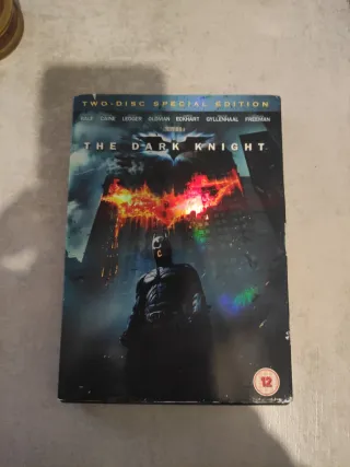 Película The Dark Knight en DVD, edición especial de dos discos. - Incluye a Christian Bale, Michael Caine, Heath Ledger, Gary Oldman, Aaron Eckhart, Maggie Gyllenhaal y Morgan Freeman. - Formato DVD.