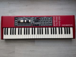 Teclado Nord Electro 4D con 61 teclas. Algunos rasguños esteticos que no afectan al funcionamiento. teclas semicontrapesadas y un juego de 9 tiradores físicos, de la serie Nord Electro 4, que posee las características de la serie Electro 3, a las que añade una sección de órgano mejorada con el nuevo motor del Nord C2D y el modelado del click, así como una nueva simulación de altavoz rotatorio 122. USB y MIDI. Soporta el Efecto Long Release. Soporta muestras de piano library y sample library. Simulaciones de Vox y Farfisa. No requiere driver para Mac OS X. con funda. Vendo por no usar.