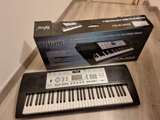 Teclado electrónico con pantalla LCD y micrófono, la caja esta dañada. - 61 teclas. - Tipo órgano electrónico. - Incluye función de enseñanza.