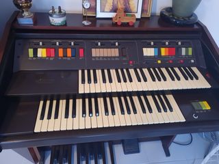 Órgano eléctrico Yamaha Electone vintage En buen estado de conservación y funcionando perfectamente. • Marca: Yamaha • Modelo: Electone • Incluye: doble teclado, pedales de bajo y banco original. • Sonidos clásicos, acompañamientos automáticos y múltiples controles para diferentes efectos y ritmos. • Ideal tanto para coleccionistas, amantes del sonido retro o para ambientar con un instrumento con mucha personalidad. 📍 Se puede ver y probar sin compromiso. 🚚 Posibilidad de entrega en mano o ayuda con transporte según zona.