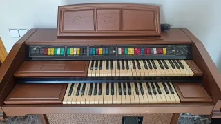 Se vende órgano eléctrico de los años 70. Está en buenas condiciones, con un diseño clásico y elegante. - Órgano eléctrico con pedal. - Color marrón oscuro. - Estilo vintage. - Funciona perfectamente
