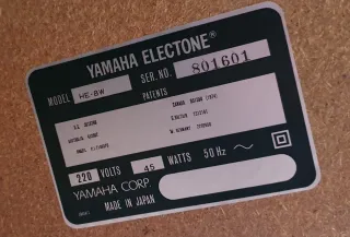 Órgano electrónico Yamaha Electone modelo HE-8W. - Modelo: HE-8W - Número de serie: 801601 - Voltaje: 220 V - Vatios: 45 W - Frecuencia: 50 Hz - Fabricado en Japón El Yamaha Electone HE-8W es un órgano electrónico doméstico de la serie Electone. Está pensado para tocar estilos variados con acompañamientos automáticos, múltiples voces y control con pedales. El Electone mezcla órgano + sintetizador + workstation + acompañamiento automático… todo en uno.
