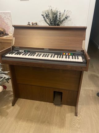 Órgano electrónico Yamaha C10 en color marrón. Un instrumento musical con un diseño clásico y elegante. Funciona correctamente, de los años 70s. Precio negociable. No se hacen envíos, el transporte corre a cuenta del comprador.