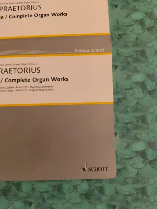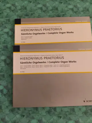 Dos volúmenes de las obras completas para órgano de Hieronymus Praetorius, publicados por Edition Schott. - Volumen ED 9582: Parte 2 de 19 Ciclos de Himnos. - Volumen ED 9583: Parte 3 de 10 Ciclos de Kyrie, Gloria, Sanctus, Agnus, 4 Ciclos de Sequentia y Salmo 113 Magnificat germanice.