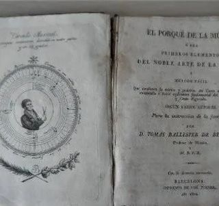 El porqué de la Música, o sea primeros elementos del noble arte de la música, y método fácil que contiene la teoría y práctica del Canto de Órgano, y un compendio o breve esplicación fundamental del Canto Llano, y Canto Figurado. Según varios autores. Para la instrucción de la juventud.BALLESTER DE BELMONTE, Tomás.B., José Torner, 1824, 23 x 17,5 cm, 4 h. + 88 págs. con numerosas notas musicales intercaladas + 2 h Y UNA LAMINA.EXCEPCIONAL