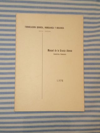 Libro de formulación orgánica e inorgánica, de Manuel de la Granja Alonso. 75 páginas. 21x15 cm, 540 ejercicios. Sin usar.