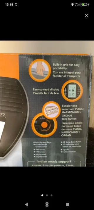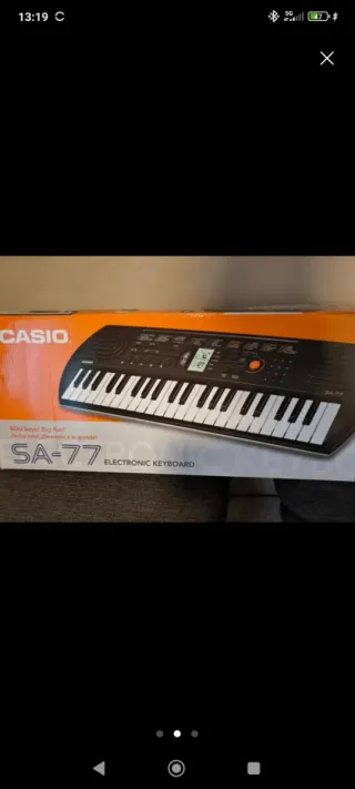 Órgano electrónico Casio SA-77, ideal para iniciarse en la música. - 44 teclas mini. - 100 tonos. - 50 patrones. - 10 melodías de banco de canciones. - 5 pads. - Soporte para música india con 4 tonos, 5 ritmos y 1 tune.