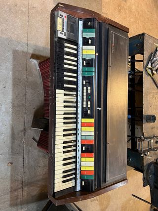 Autentico organo Hammond de los años 70. En buen estado visual. Se le ha hecho un diagnostico y se tendrian que canviar algunos condensadores que se han secado. El amplificador funciona y el cableado esta intacto. Unico propietario. Siempre ha estado en casa. Ideal para proyecto de restauracion.