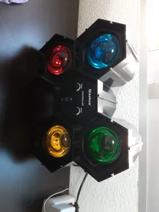 Este órgano de luz Qiaohua tiene un diseño hexagonal con cuatro focos de colores: rojo, azul, amarillo y verde. Funciona al ritmo de la música. - Diseño hexagonal. - Cuatro focos de colores: rojo, azul, amarillo y verde. - Control de música.