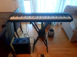 Piano digital KORG SP200 en perfecto estado. Se vende por falta de uso. Ideal para estudiantes o músicos que buscan un sonido de calidad. Incluye pedal y caballete. - Teclado de 88 teclas contrapesadas. - Sonidos de piano, órgano y cuerdas. - Conexión para auriculares y pedal. - Soporte incluido.