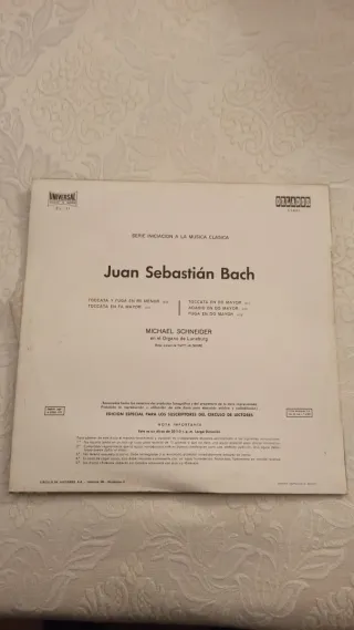 Disco de vinilo con Iniciación a la música clásica. - Incluye Toccata, y fuga en re menor y Toccata, adagio y fuga en do mayor de Juan Sebastián Bach. - Interpretado por Michael Schneider al órgano de Luneburg.
