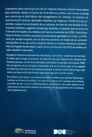 Comentarios a la Ley Orgánica 1/2018, de 5 de noviembre, de Reforma del Estatuto de Autonomía de Canarias Editorial: BOLETIN OFICIAL DEL ESTADO/Parlamento de Canarias Año de edición: 2020 ISBN: 978-84-340-2658-2 Páginas: 1224 Encuadernación: Cartoné