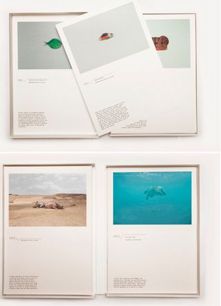 libro de artista que contiene 55 placas con documentos y fotografias del artista Zaho Renhui contenidos en una caja de archivo hecha a mano, firmadas individualmente con un certificado de impresión emitido de 21 cm x 14,8 cm, diseñado por H55 en Singapur, edición de 500 ejemplares. Una guía de la flora y la fauna del mundo busca documentar y reflexionar sobre la miríada de formas en que la acción y la intervención humanas están alterando lentamente el mundo natural. La guía presenta un catálogo de criaturas curiosas y formas de vida que han evolucionado de maneras a menudo inesperadas para hacer frente a las tensiones y presiones de un mundo cambiado. Otros organismos documentados en la instalación son el resultado de la intervención humana, mutaciones diseñadas para servir a varios intereses y propósitos que van desde la investigación científica hasta el deseo de ornamentación. Más información en el Instituto de Zoólogos Críticos. Páginas: 57+8+12 Lugar: Singapur Año: 2013 Editor: Instituto de Zoólogos Críticos Tamaño: 25 x 36 cm (aprox.)