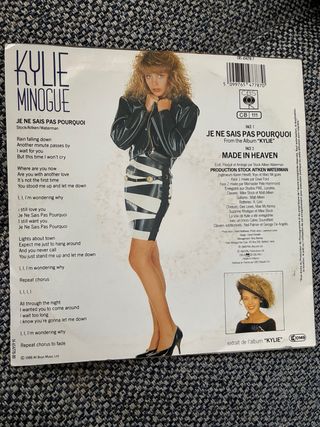 Vinilo single de Kylie Minogue. - Título: Je Ne Sais Pas Pourquoi & Made In Heaven. - Género: Pop internacional.