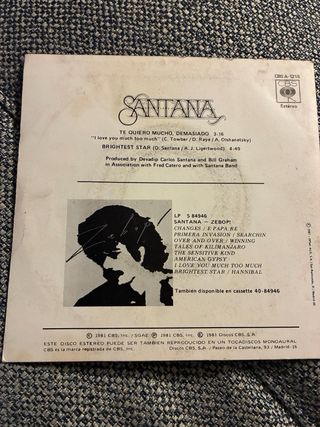 Portada de single de Santana. - Título: Te Quiero Mucho, Demasiado - Género: Latino