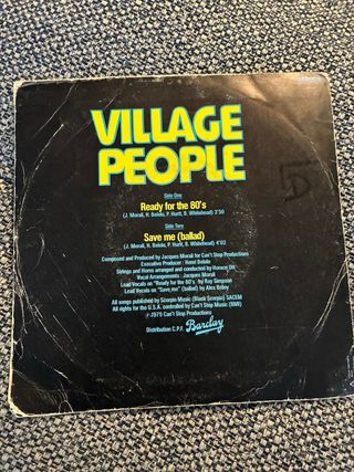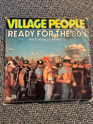Single de vinilo del grupo Village People. - Título: Ready For The 80's (Prêts Pour Les Années 80). - Sello discográfico: Barclay.