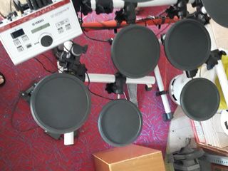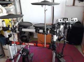 Batería electrónica Yamaha DTX400K en buen estado. Incluye todos los componentes que se ven en las fotos. - Pads de batería y platillos. - Módulo de sonido. - Pedal de bombo. - Soporte de batería.