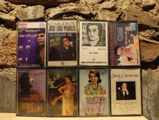 Lote de 18 cintas de cassette con música española de diversos artistas. - Incluye Lo mejor de José Luis Perales. - El Cuponero de El Cuponero. - La Rumba Caliente de Gato Pérez. - Maria Dolores Pradera. - Maria del Monte. - El Luis. - José Carreras. - La Venta. # k7 cinta de cassette casette casete