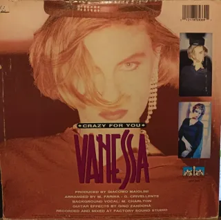 Vinilo de Vanessa con el álbum Crazy For You, lanzado en 1989. - De segunda mano, 12" 45rpm. - Producido por Giacomo Maiolini. - Arreglos de M. Farina y G. Crivellente. - Voz de fondo de M. Charlton. - Efectos de guitarra de Gino Zandoná. - Carátula con defectos de rotura.