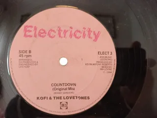 Vinilo de Countdown de Kofi & The Lovetones, lanzado en 1984. - De segunda mano. - Cara A: Countdown (Remix). - Grabación de 45 rpm. - Producido y remezclado por Kevin Antony Roberts.
